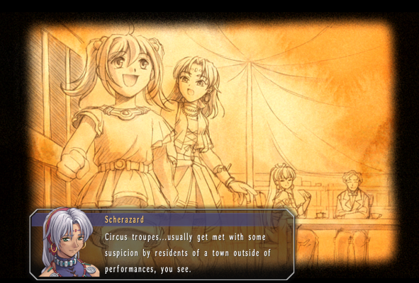 aww got more backstory for schera, living out on the streets as a kid resorting to thief, getting adopted by the travelling circus, but the members drifted away after the owner died and schera reached out to cassius for guidance