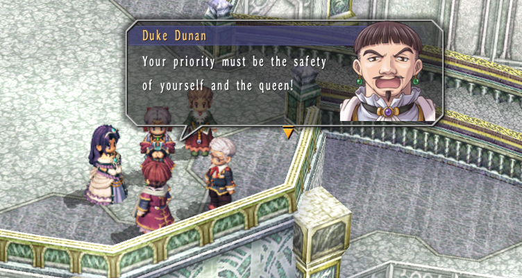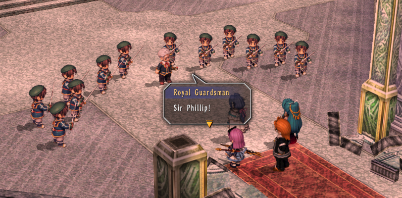 really glad i learnt turbo speed for the game cause i was going back and forth a lot between towns to restore all the phones. anyway fast forward from saving the school with gunpower guns, having anelace and kurt on the party for a time, restoring the hot spring... but now grancel has been attacked and is up in flames. here's hoping the queen and kloe are ok
